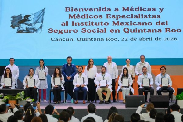 Cancún.- Con la presencia del director general del Instituto Mexicano del Seguro Social (IMSS), Zoé Robledo Aburto, la gobernadora Mara Lezama Espinosa encabezó la ceremonia de bienvenida de 123 médicas y médicos especialistas que se integran al Instituto en Quintana Roo, como parte del histórico fortalecimiento del sistema de salud en la entidad. En esta…